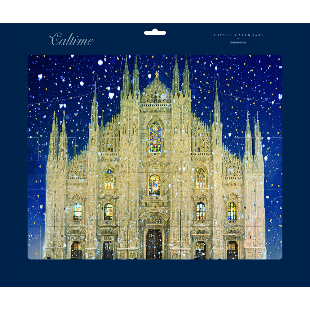 A traditional advent calendar with a stunning 3D image of the Duomo di Milano.