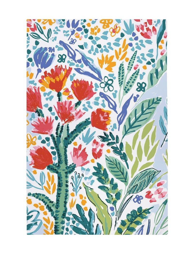 100% Cotton tea towel with a bright, colourful abstract flower pattern.