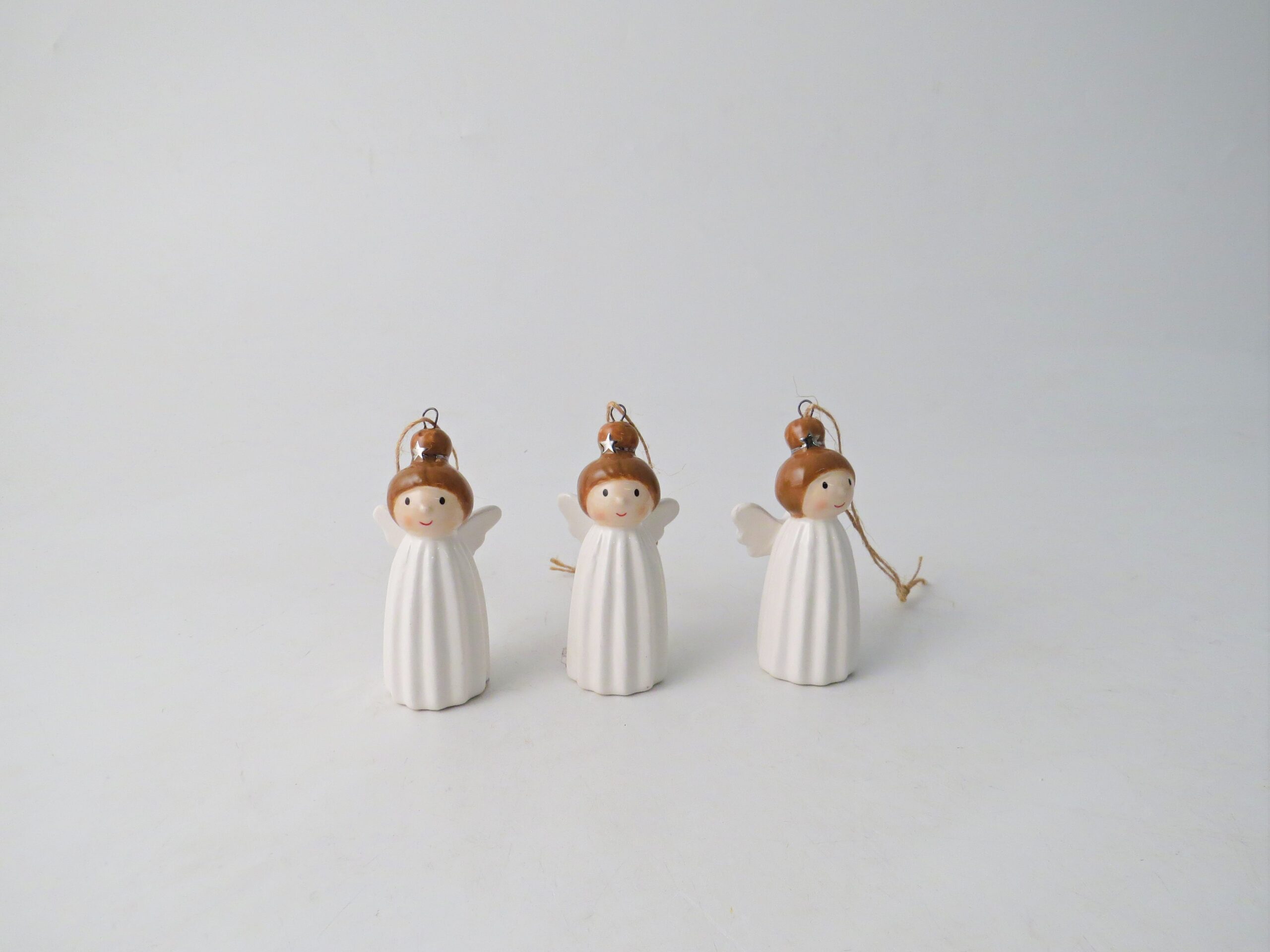This elegant mini ceramic angel is the ideal ornament to adorn your Christmas tree. Dressed in white and with a star in her hair, this angel will bring joy to your home this Christmas time.