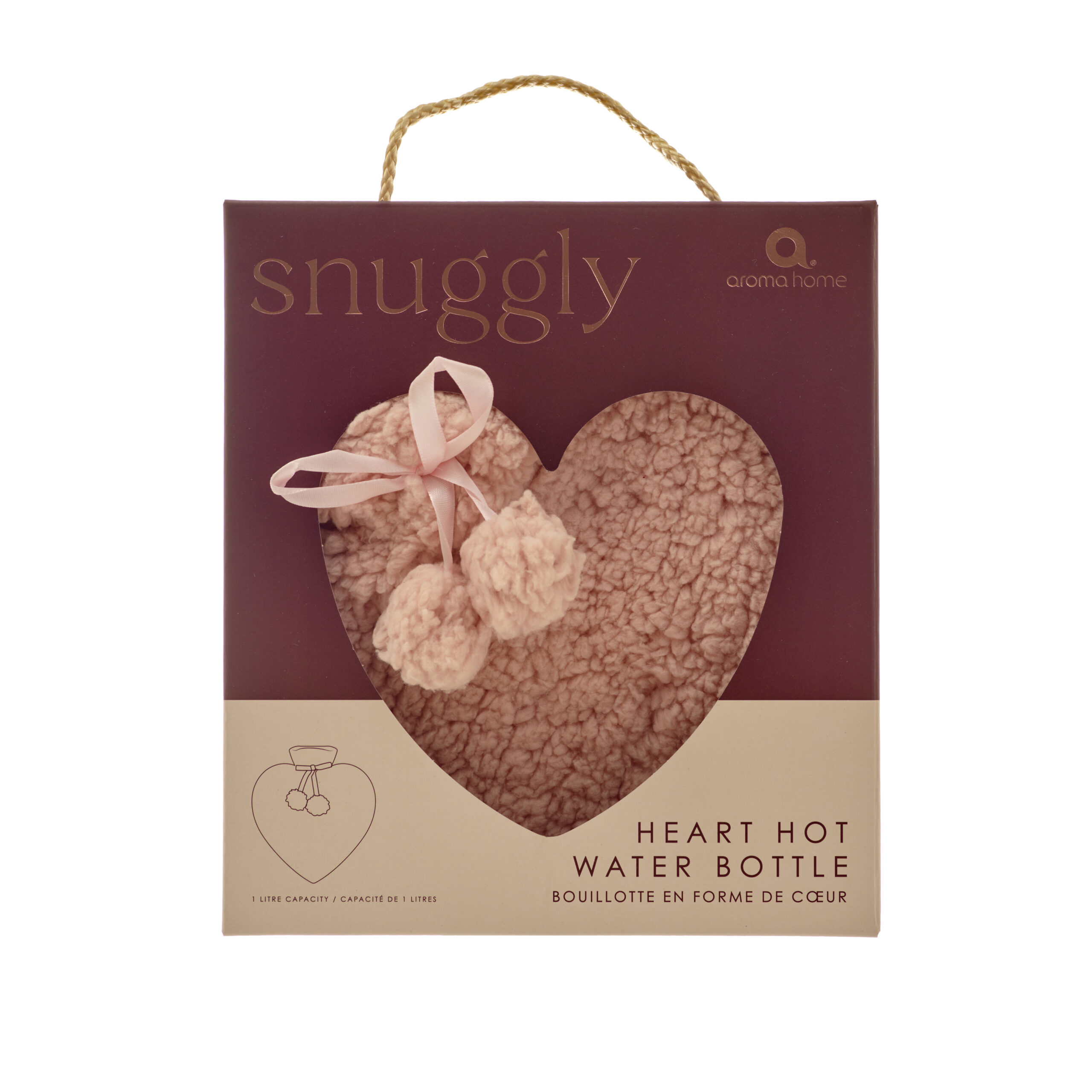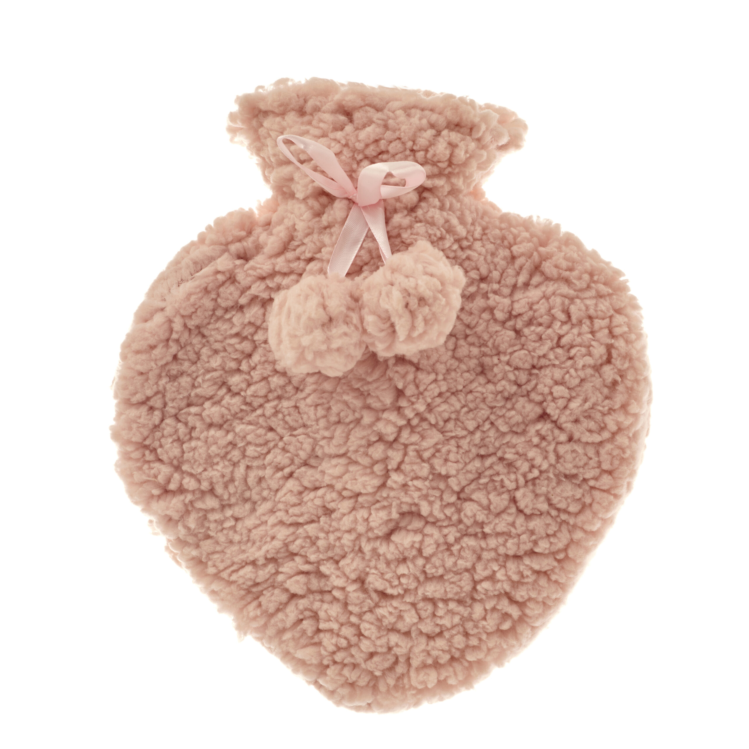 In the shape of a heart, the pink hot water bottle is super soft and snuggable. With two pom poms tied round the top with a pink ribbon for an extra cute touch.