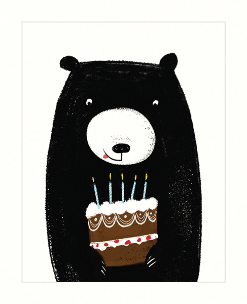 Send birthday wishes with this lovely card featuring an illustration of a black bear holding a birthday cake decorated with candles.