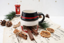 A fun, novelty snowman mug with a tray in the back to hold a biscuit! Ideal for cosy nights in with a hot chocolate!