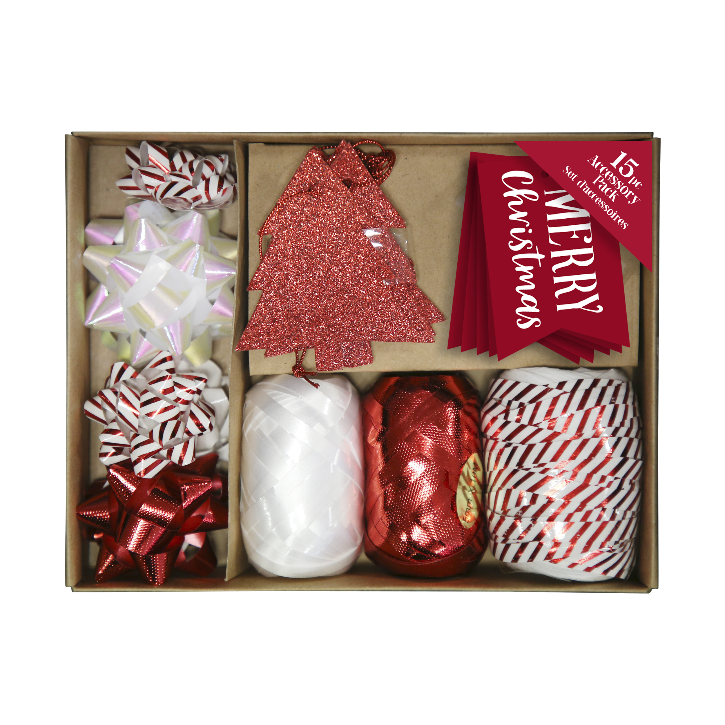 This fabulous accessory pack includes 15 of your wrapping essentials, including gift tags, ribbons and bows, all packed in a kraft card box.