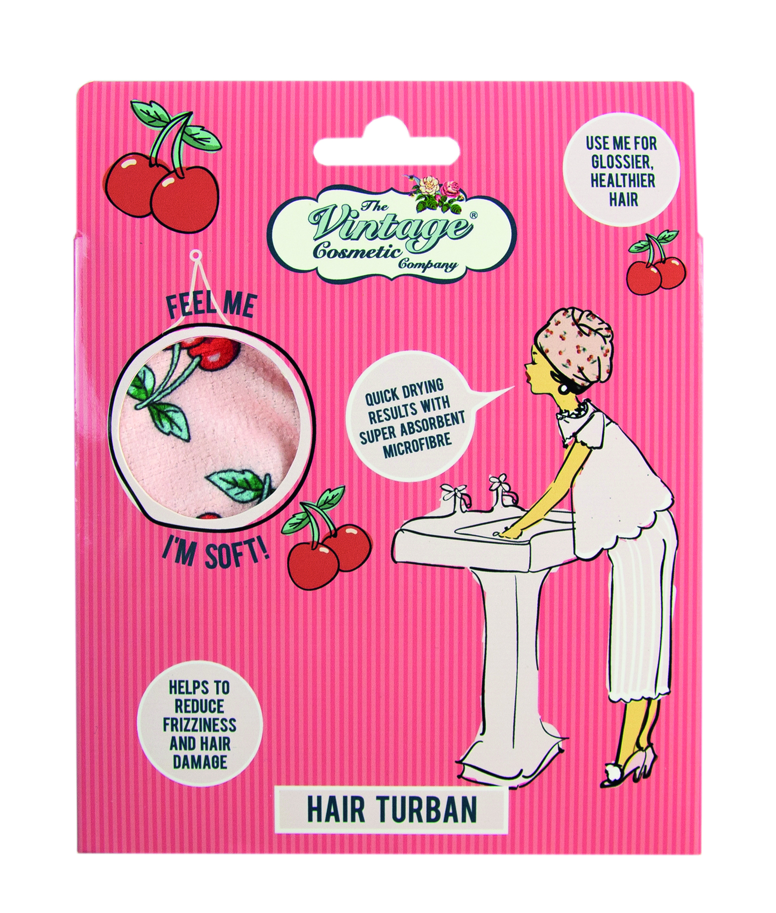 Super soft microfibre hair turban in a fun cherry print design.