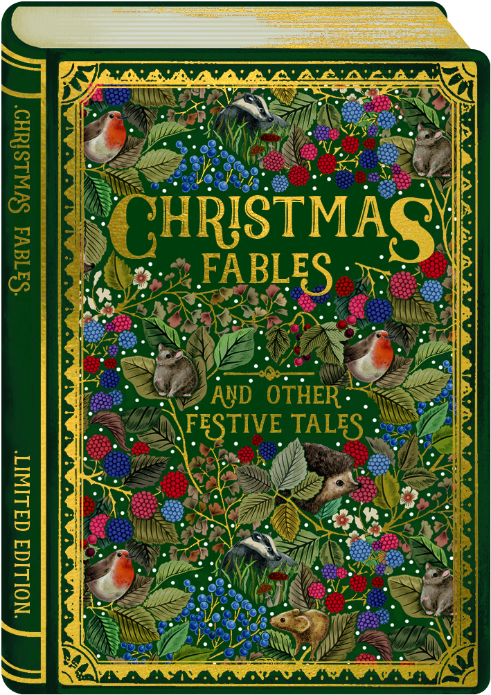 Enchant book lovers and nature enthusiasts alike with this beautifully crafted book-shaped Christmas card. Featuring “Christmas Fables and Other Festive Tales” in elegant gold lettering, it’s set against a rich green background adorned with woodland animals—robins, badgers, mice—and seasonal foliage like holly and berries. Embossed, die-cut, and finished with gold foil, it’s a keepsake-worthy design that evokes warmth, nostalgia, and festive storytelling. Ideal for mantel displays or sending a touch of literary charm through the post.