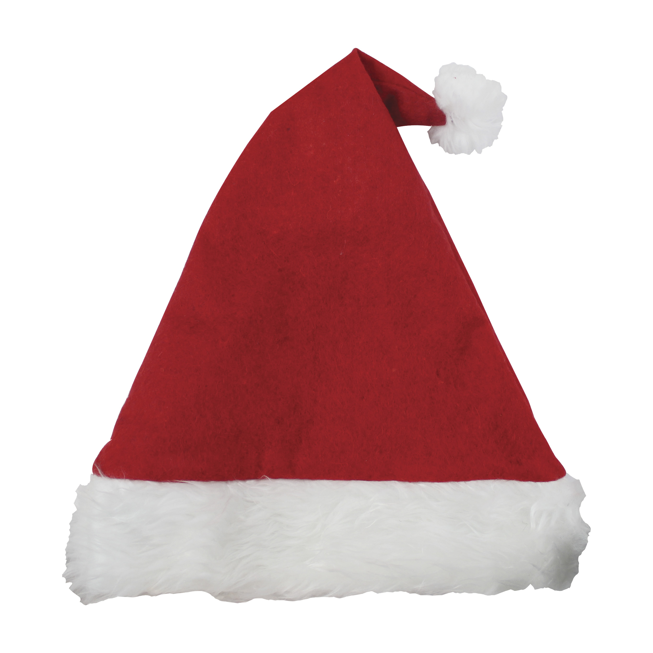 Classic red Santa hat with soft felt, fluffy trim, and pom pom, perfect for festive fun and seasonal snaps.