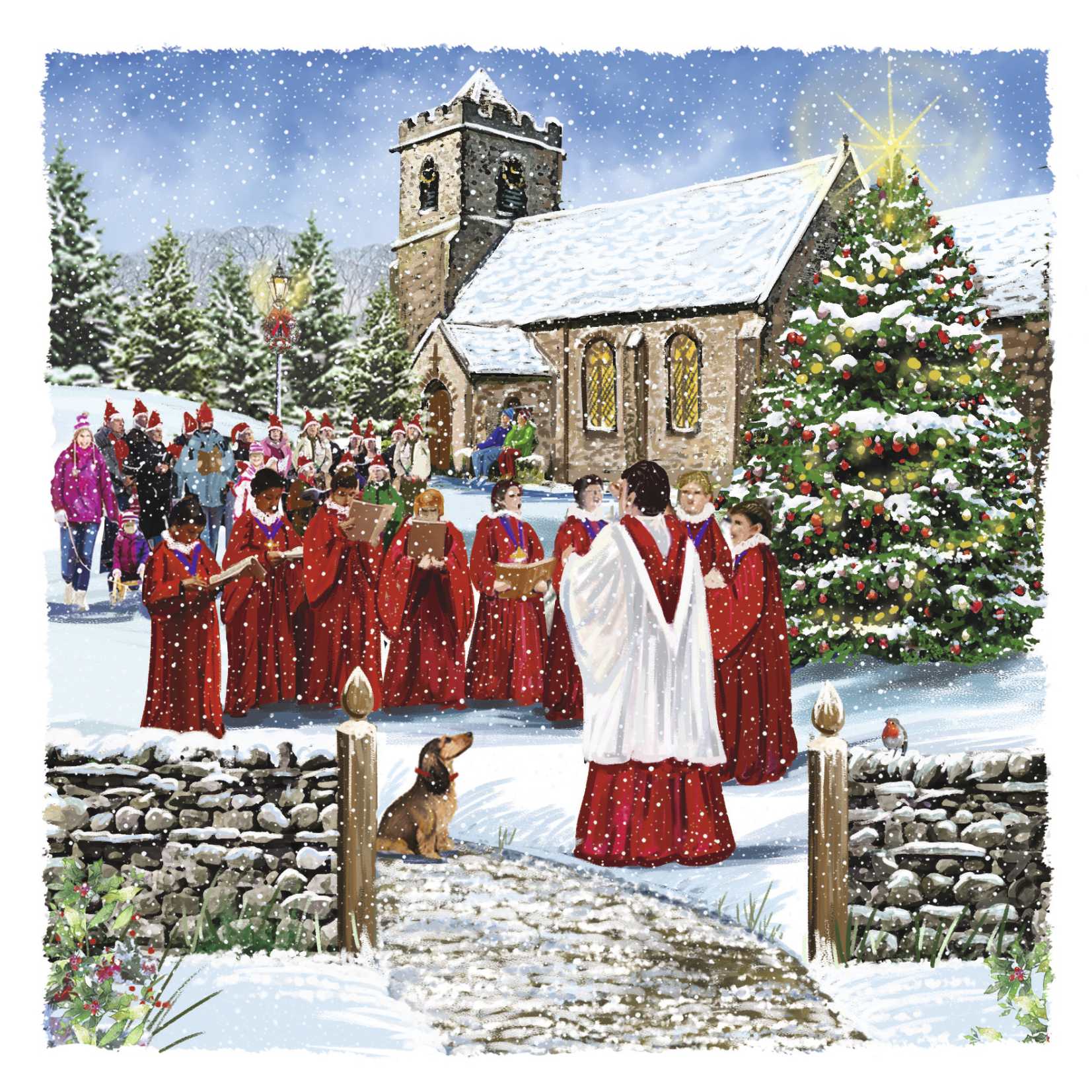 These charity Christmas cards feature a wonderful festive scene as people gather outside the church on a snowy day to sing alongside the choir. This charity Christmas card pack supports Diabetes UK.