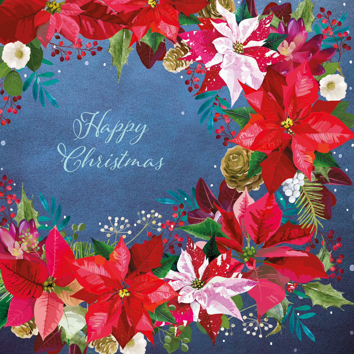 Christmas card with an image of a Poinsettia wreath