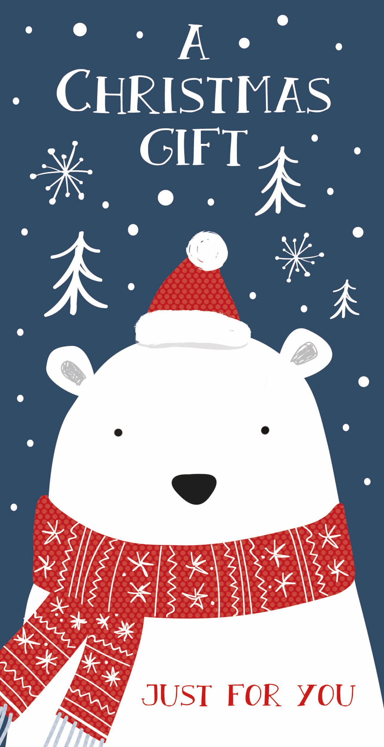 This money wallet has an image of a cute polar bear dressed for the winter season. The text on the front reads ‘A Christmas Gift Just for You’.